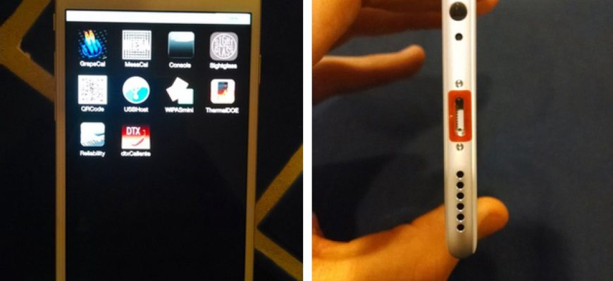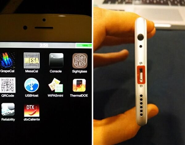 Характерно, что данный аппарат вовсе не «муляж» с оригинальной маркировкой, а вполне рабочее устройство, которое функционирует на базе тестового ПО Switchboard. С помощью последнего инженеры Apple тестируют дисплей, электронные схемы, а также беспроводные интерфейсы смартфона.