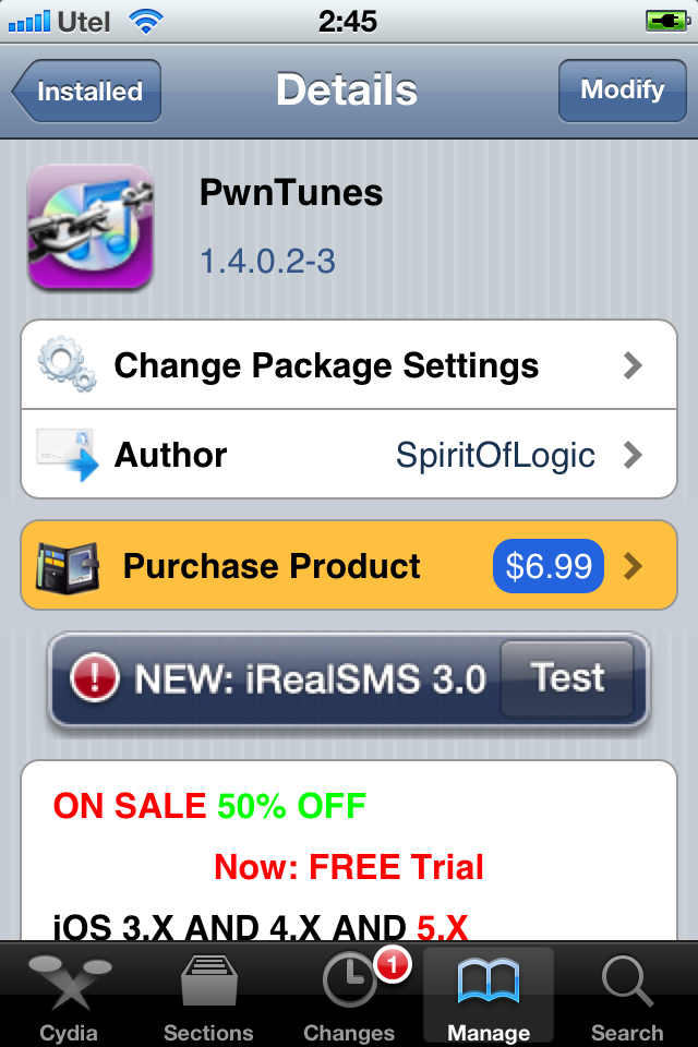 Запустите Cydia на вашем устройстве. Откройте нужный платный твик и жмите купить (Purchase Product).