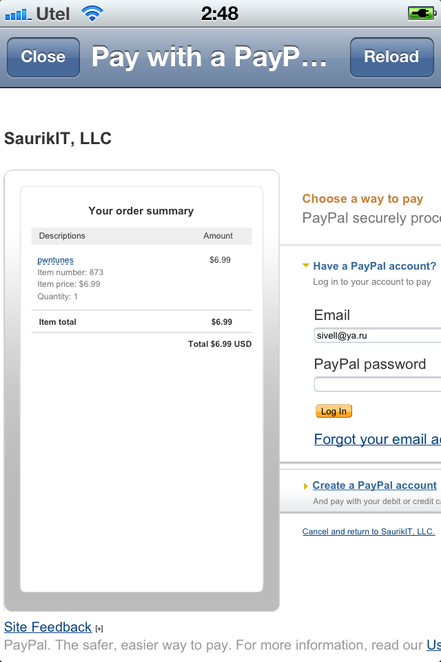 Авторизуйтесь в PayPal. После чего, наверняка выдаст ошибку.