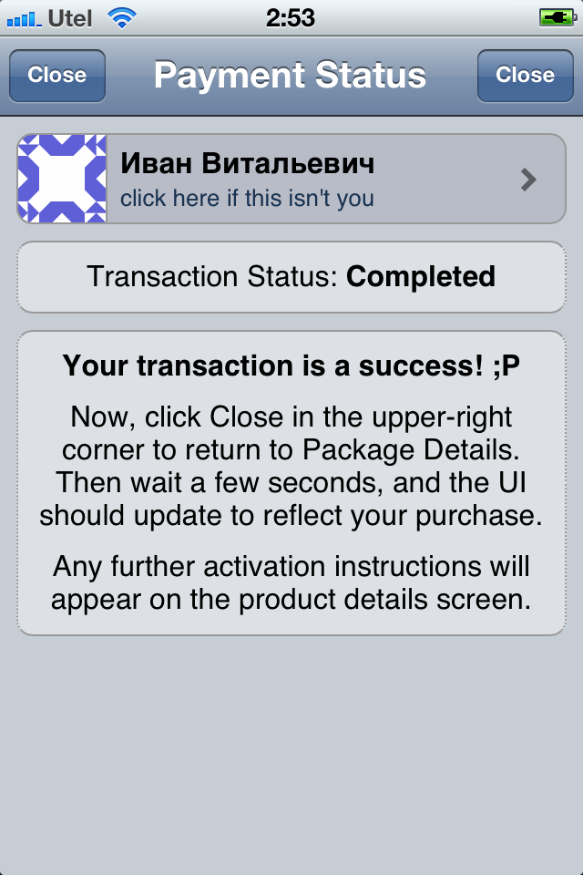 При удачной покупке, окажетесь на подобной странице, с надписью «Transaction Status: Completed»