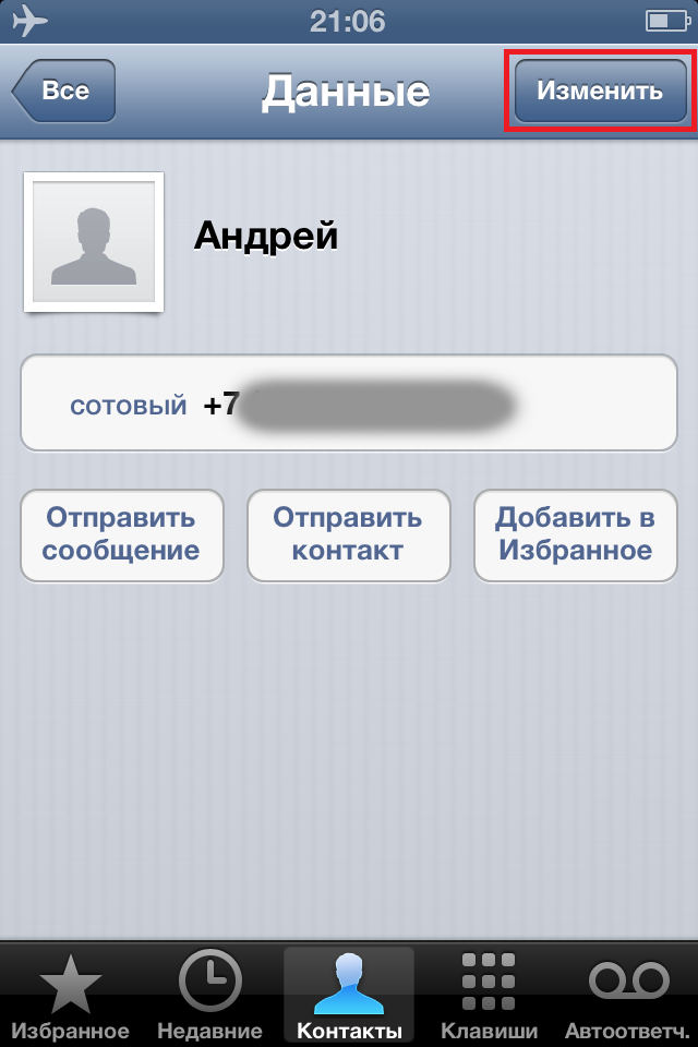 1. Зайдите в контакт, для которого хотите установить особенную мелодию звонка, и нажмите Изменить.