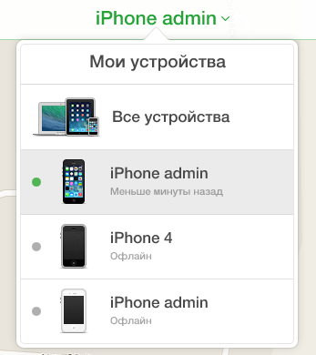 3. Откроется карта, на которой будут указаны местоположения всех имеющихся у вас устройств, подключенных к интернету. Если же в данный момент устройства не имеют доступа к интернету, то будет показано их последнее местоположение, на котором был доступ к сети.