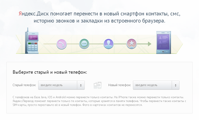 Поисковой робот Яндекс сделал своим поклонникам серьёзный внезапный подарок. Теперь есть функция, которая так и называется – Яндекс.Переезд. Этот вариант – только небольшая часть общего сервиса, известного как Яндекс-Диска. Часто чтобы воспользоваться функцией, нужно бывает посетить официальную страницу данного сервиса, после чего следует только указать конкретную модель сотового, с которым предстоит работа. После чего вы получите информацию о том, как это делать. Во внимание принимается как то, на какую именно модель будет перенос, так и то, с какой именно модели.