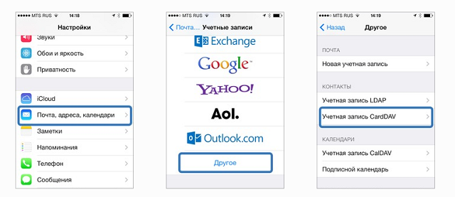 После этого перейти следует, пожалуйста, в меню с пунктом настройки, а оттуда – в почту и календари. Нужно нажать на кнопку «добавить», а там выбрать подпункт «Другое». И уже непосредственно в открывшемся вам окне следует выбрать пункт учётной записи CardDAV. Следующим шагом нужно указать сервер, выбрав сам сайт, в качестве пользователя используйте свой логин на сайте Яндекс. Ну или же заведите его, это довольно быстро обычно. Потом ваш же пароль, в графе описание просто укажите – Яндекс.