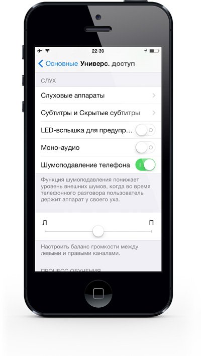Порой шумоподавление может быть не особенно актуальной функцией. Одним словом, если для вас это – востребовано, то в отношении пятерки со всеми вариациям её можно включить. А в более ранних вариациях третий микрофон просто-напросто отсутствует. Поэтому для них подобные данные не особо актуальны. Для начала лучше перейти в настройки, дальше в подгруппу основные, а оттуда – в универсальный доступ. После этого прокрутить следует вниз, прямо до пункта, где обозначено шумоподавление смартфона.