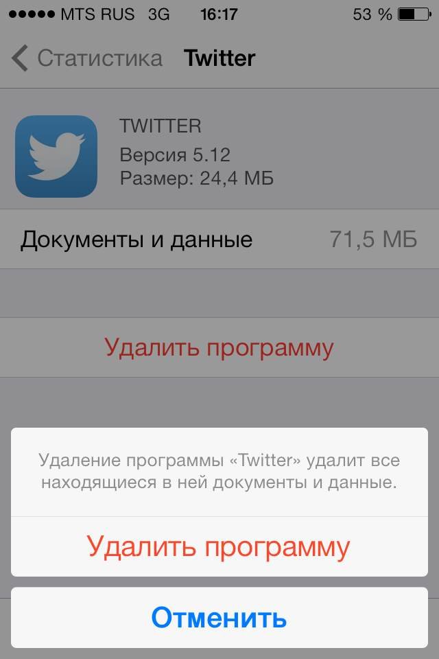 При втором способе удаления вы узнаете, сколько точно места данное приложение занимало непосредственно в памяти айфона. Эти сведения будут показываться как раз перед окончательным стиранием программы из памяти устройства. Для начала нужно запустить раздел настройки, оттуда – в раздел «Основные». Потом уже – в статистику. Дальше можно выбрать требуемое приложение. У вас появится экран, на котором нужно нажать на «Удаление программы». И подтвердить свои действия, разумеется. В вашем списке нет в наличии требуемого приложения? Не проблема. Если вы уверены, что приложение установлено в айфоне, то после совершения перехода в настройки и в группу основные – дальше в статистику – пролистайте внимательно список. Нажмите потом на «показать все программы». Вы увидите результаты.