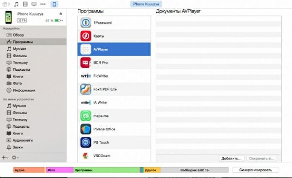 Зайдите во вкладку «Приложения», находящуюся в настройках гаджета. Найдите заголовок Общие файлы. Отсюда можно загружать выбранную информацию непосредственно в приложения. Для этого нужно выбрать вашу программу и последовательно перетащить файлы в соответствующее окно, нажимая клавишу «Добавить».