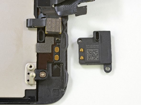 У 5 версии iPhone крепление имеет слуховой динамик, который держится на двух шурупах и пружинных контактах. Фронтальную камеру можно просто извлечь при необходимости, она держится на шлейфе.