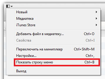 1. Запустите iTunes. В левом верхнем углу нажмите на иконку и в выпадающем меню выберите «Показать строку меню»